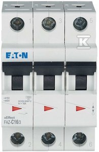 Wyłącznik nadprądowy serii 15kA 3-biegunowy FAZ-C16/3 o numerze katalogowym  278873 w kategorii Wyłączniki nadprądowe 15kA, Wyłączniki nadprądowe. Produkt wyprodukowany przez markę EATON, seria FAZ.