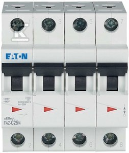 Wyłącznik nadprądowy serii 15kA 4-biegunowy FAZ-C25/4 o numerze katalogowym  279063 w kategorii Wyłączniki nadprądowe 15kA, Wyłączniki nadprądowe. Produkt wyprodukowany przez markę EATON, seria FAZ.