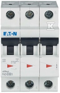 Wyłącznik nadprądowy serii 15kA 3-biegunowy FAZ-C32/3 o numerze katalogowym  278876 w kategorii Wyłączniki nadprądowe 15kA, Wyłączniki nadprądowe. Produkt wyprodukowany przez markę EATON, seria FAZ.
