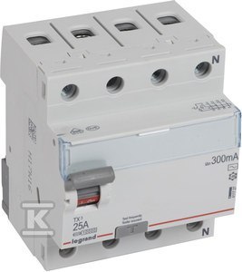 Wyłącznik różnicowoprądowy P304 4P 25A 300MA TYP AC TX3 o numerze katalogowym  411727 w kategorii Wyłączniki różnicowoprądowe typ AC, Wyłączniki różnicowoprądowe. Produkt wyprodukowany przez markę LEGRAND, seria P30TX.