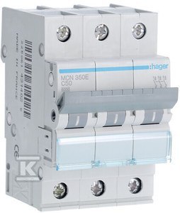 Wyłącznik nadmiarowo-prądowy, 6kA, charakterystyka C, 3-biegunowy, 50A o numerze katalogowym  MCN350E w kategorii Wyłączniki nadprądowe 6kA, Wyłączniki nadprądowe. Produkt wyprodukowany przez markę HAGER.