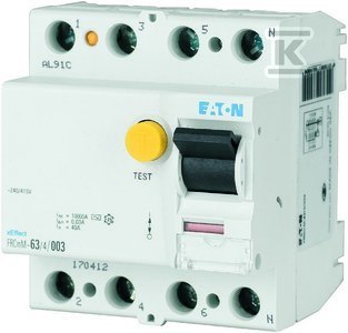 Wyłącznik różnicowoprądowy typ AC 4-biegunowy FRCmM-40/4/003 o numerze katalogowym  170411 w kategorii Wyłączniki różnicowoprądowe typ AC, Wyłączniki różnicowoprądowe. Produkt wyprodukowany przez markę EATON, seria FRCmM.