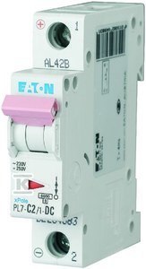 Wyłącznik nadprądowy 10kA DC PL7-C2/1-DC o numerze katalogowym  264883 w kategorii Wyłączniki nadprądowe 6kA, Wyłączniki nadprądowe. Produkt wyprodukowany przez markę EATON, seria PL7 DC.