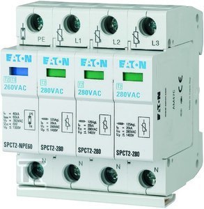 Ogranicznik przepięć SPCT2-280-3+NPE o numerze katalogowym  167620 w kategorii Ograniczniki przepięć typ 2, Ograniczniki przepięć. Produkt wyprodukowany przez markę EATON, seria SPCT2.