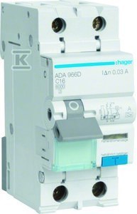 Wyłącznik różnicowoprądowy z członem nadprądowym C/6KA, 16A, 30mA, 2 biegunowy, typ A o numerze katalogowym  ADA966D w kategorii Wyłączniki różnicowoprądowe z członem nadprądowym typ A, Wyłączniki różnicowoprądowe nadprądowe. Produkt wyprodukowany przez markę HAGER.
